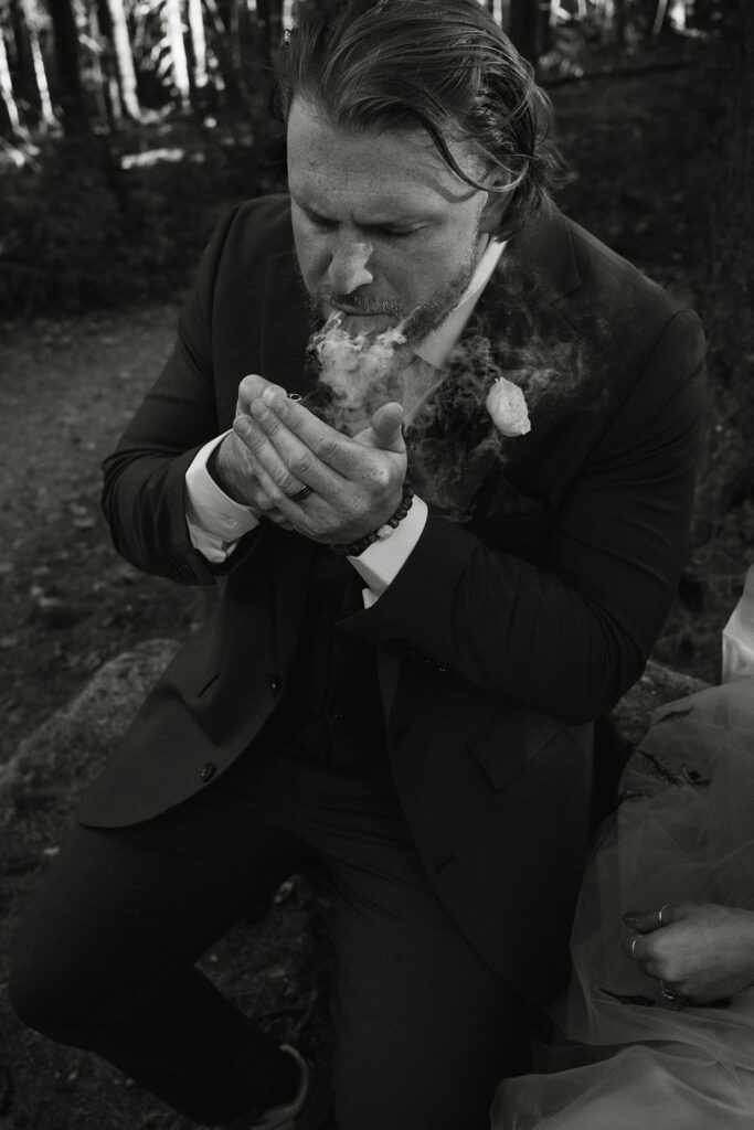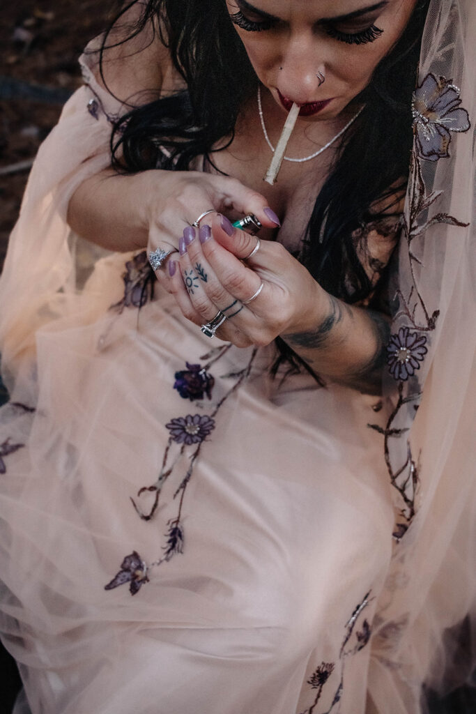 On our way back down the mountain, we paused halfway for a quick 420 session. One thing I always tell my couples is to choose activities that are meaningful to them and that they genuinely enjoy doing together. These moments are what make each elopement unique and memorable. While they lit up, I documented their interactions before we continued our descent.